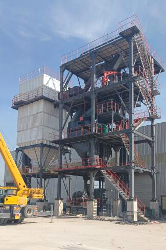 原料經(jīng)過(guò)電子秤進(jìn)入到皮帶輸送機(jī)中,由全封閉的提升機(jī)將物料入到五孔碾磨制砂機(jī)內(nèi)進(jìn)行破碎處理,再由空氣篩對(duì)破碎后的物料進(jìn)行篩分、選粉處理,篩分后的較大物料會(huì)返回五孔碾磨制砂機(jī)中進(jìn)行二次破碎,符合要求的砂子則經(jīng)過(guò)加濕拌合機(jī)由傳送帶輸送至成品倉(cāng)中;篩分過(guò)程中的粉塵會(huì)經(jīng)粗細(xì)粉分離機(jī)進(jìn)入到布袋收塵器內(nèi),而其中較大的粗顆粒會(huì)在粗細(xì)粉分離機(jī)的作用下,按需求在成品砂中進(jìn)行回?fù)剑?xì)粉塵將通過(guò)風(fēng)力進(jìn)入到布袋收塵器,作為副產(chǎn)品進(jìn)行使用。