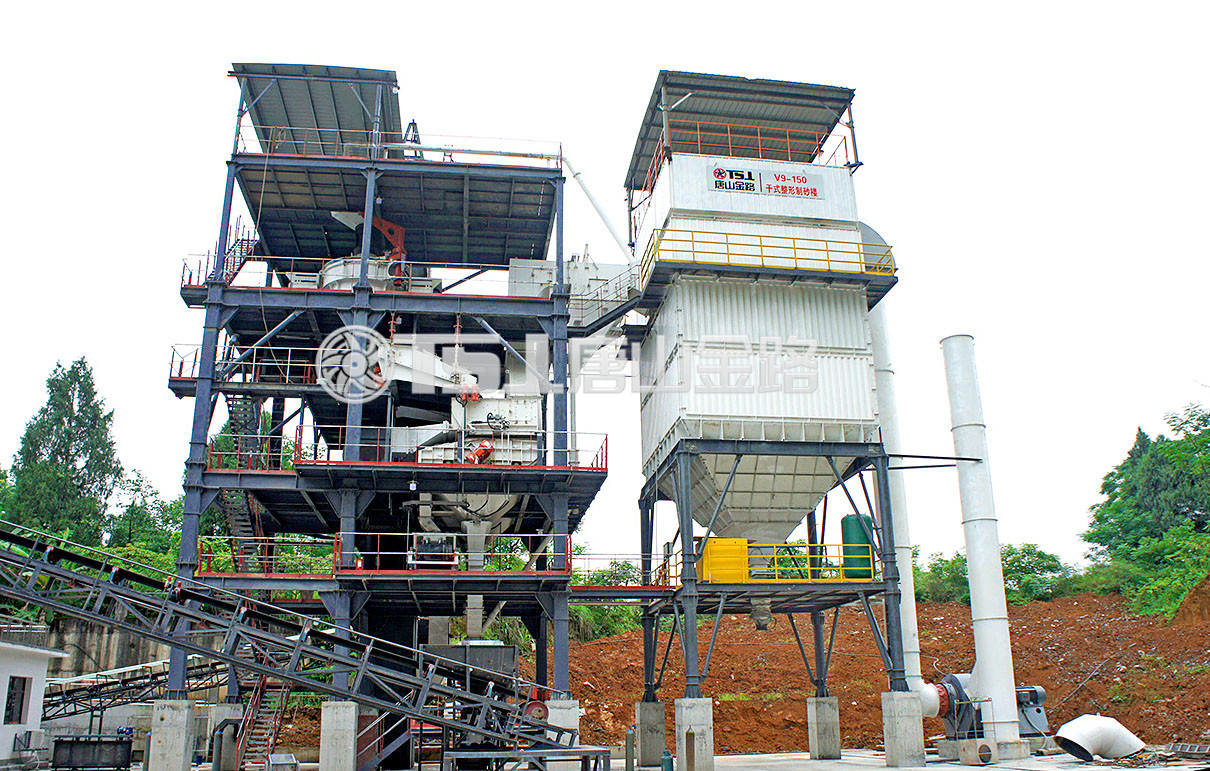 唐山金路V9干式制砂樓主要用于高品質(zhì)機(jī)制砂的生產(chǎn)中。這款塔樓式結(jié)構(gòu)的制砂設(shè)備高度集約,把制砂、粒形優(yōu)化、石粉控制、級(jí)配調(diào)整、含水率控制、環(huán)保處理結(jié)合于一體,減小占地面積的同時(shí)發(fā)揮多種功用。此外,這款設(shè)備采用全封閉的干法制砂工藝,減少粉塵外溢,防止廢水污染。